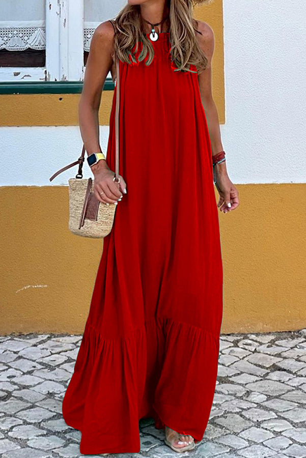 Summer Colors Elastic Neckline A-line Loose Maxi Dress