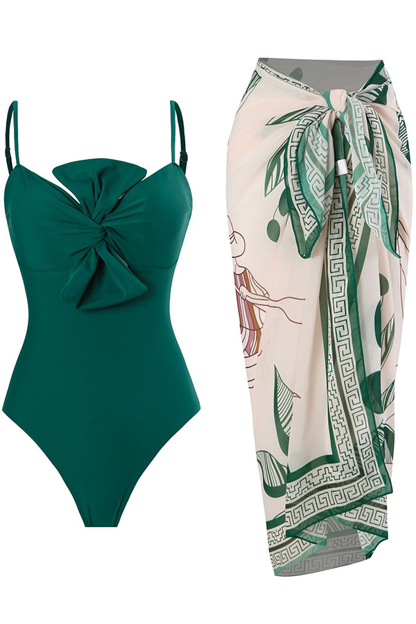 Sling Bow One Piece Swimsuit and Lake Print Skirt